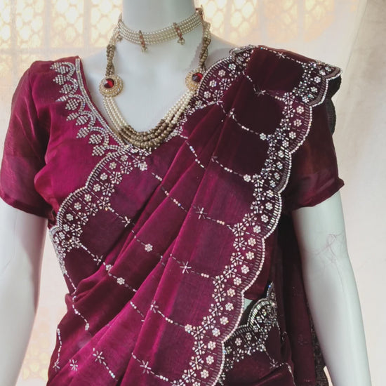 Beautiful Fancy Zarkhan Diamond Work Saree