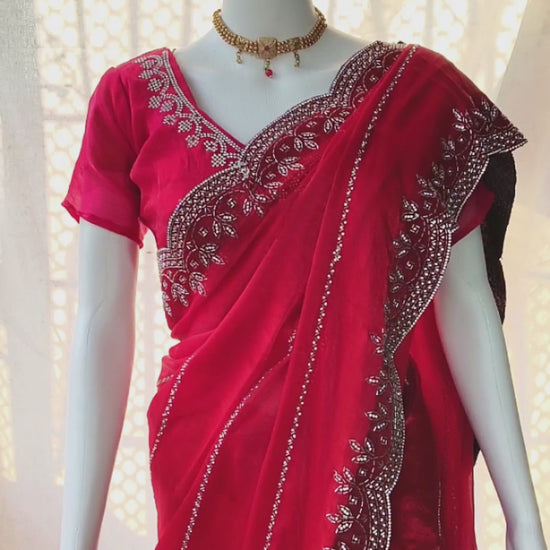 Beautiful Fancy Zarkhan Diamond Work Saree