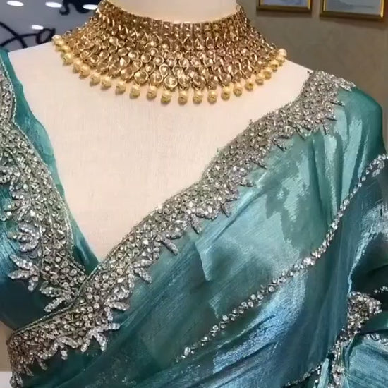 Heavy Jimmy Chu Fabric, Zarkhan & Diamond Embellished Saree, 7 Colors