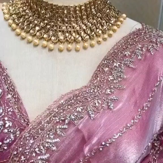 Here are typical elements you would see in a Jarkhan Diamond Work Saree, which help define its look and appeal: